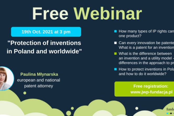 More information: https://www.jwp-fundacja.pl/szkoleniaall/protection-of-inventions-in-poland-and-worldwide/